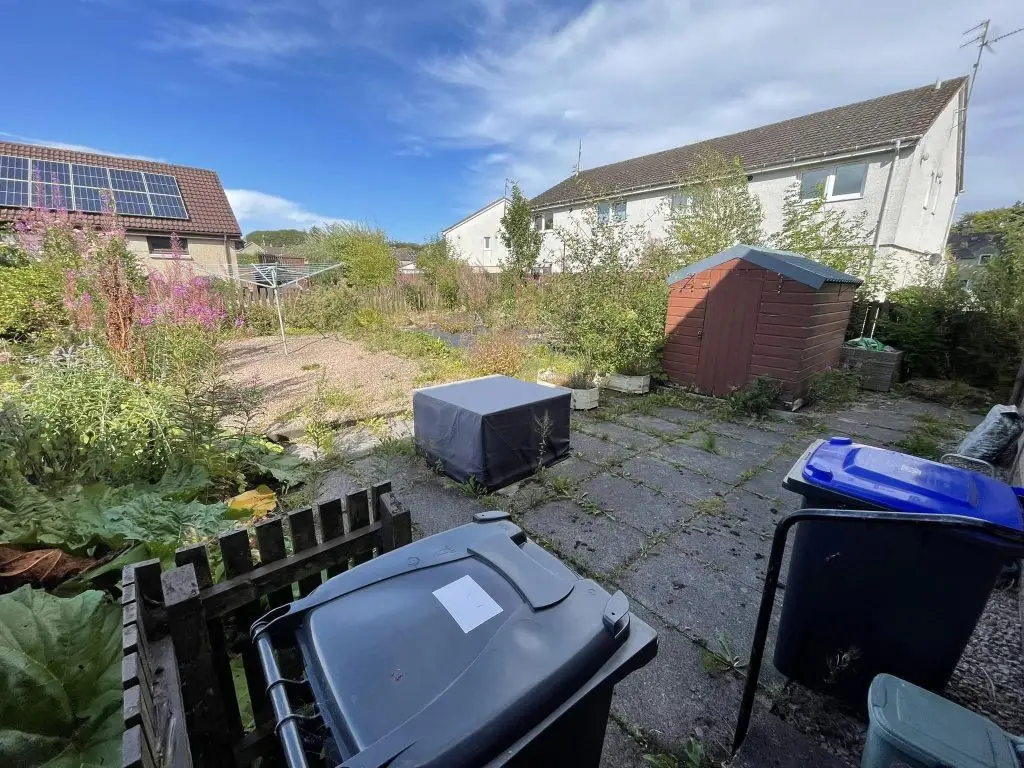 The old, uneven patio slabs were replaced with one smooth, single reinforced patio. All boarders were tidied up with washed chuckies and a rotary washing line installed.